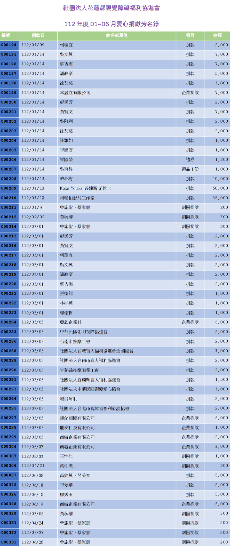 112年度愛心芳名錄